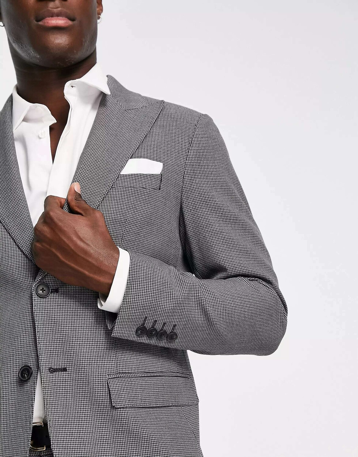 Серый приталенный пиджак с узором "гусиные лапки" Selected Homme