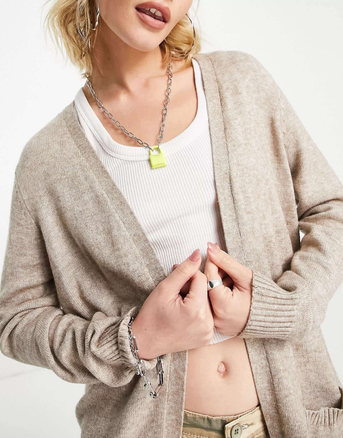 Только легкий вязаный кардиган бежевого цвета ONLY