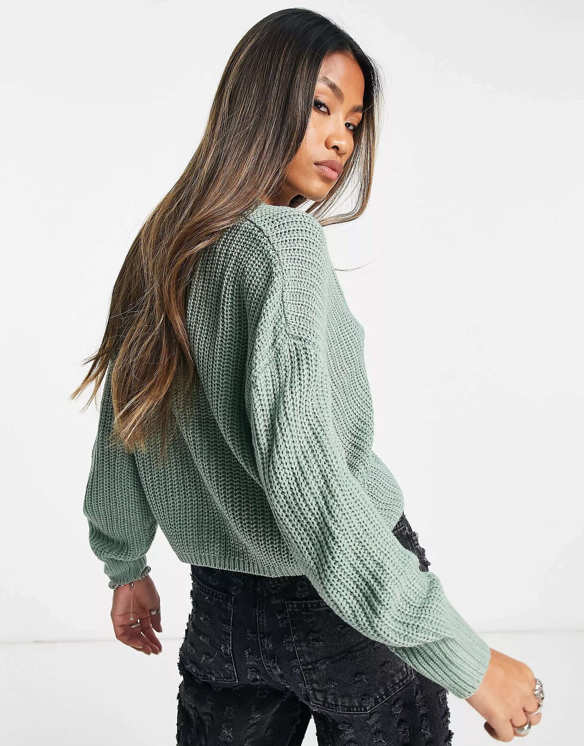Зеленый кардиган на пуговицах только в рубчик ONLY