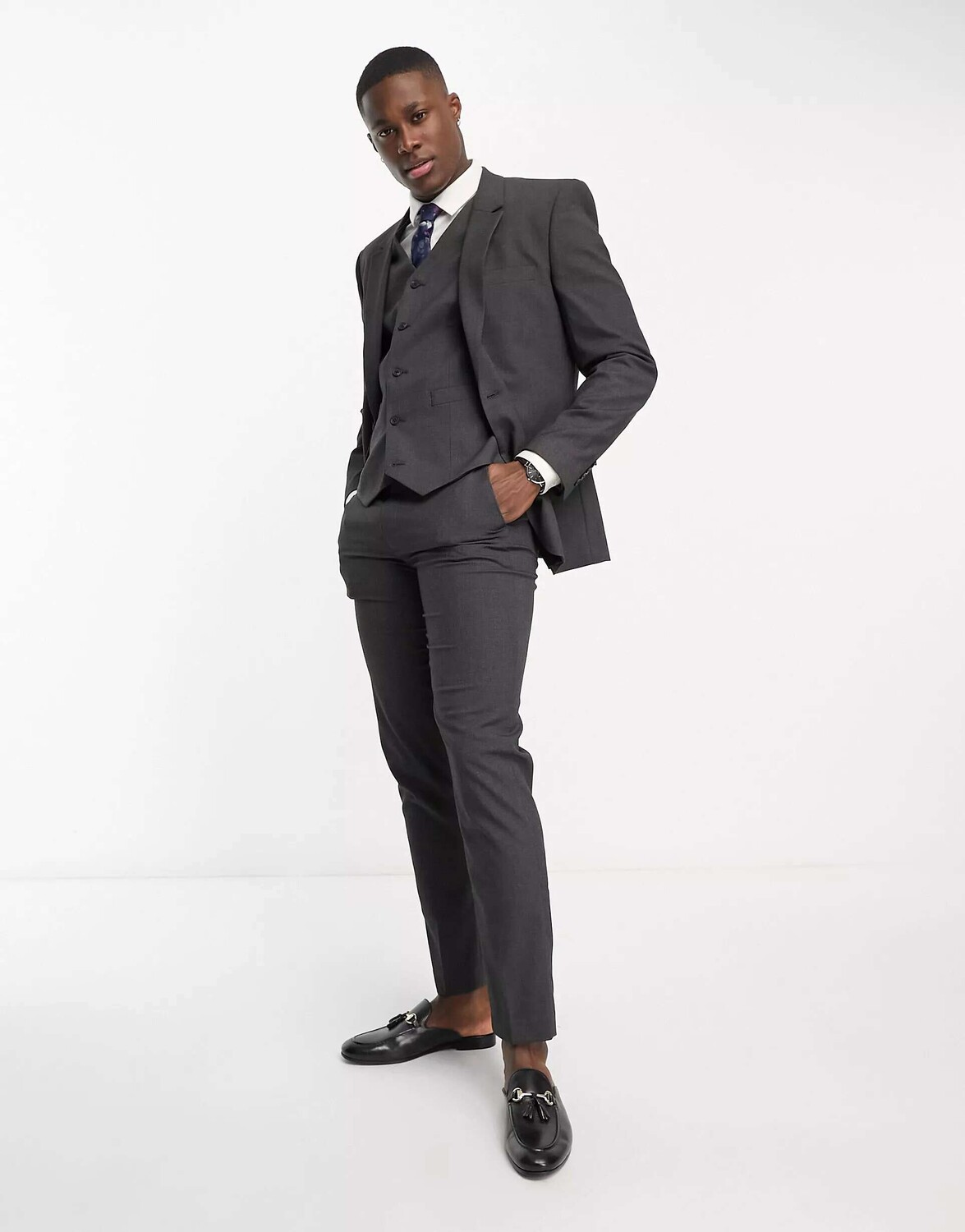 Темно-серые узкие костюмные брюки ASOS