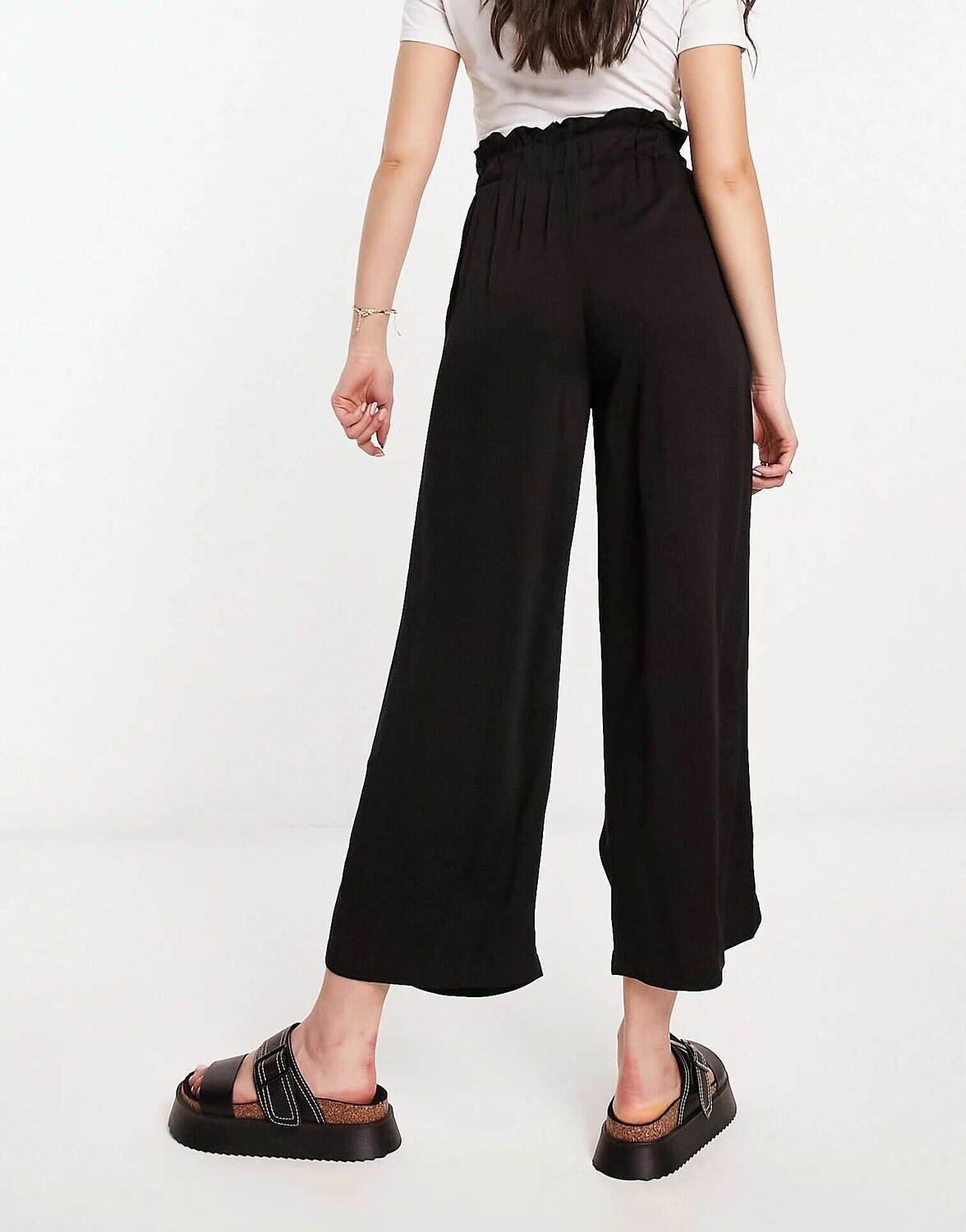 Черные брюки-кюлоты со сборками на талии ONLY