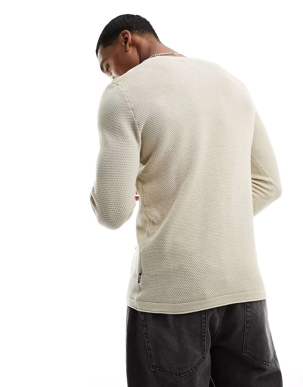 Бежевый джемпер с текстурированным круглым вырезом и круглым вырезом Only & Sons