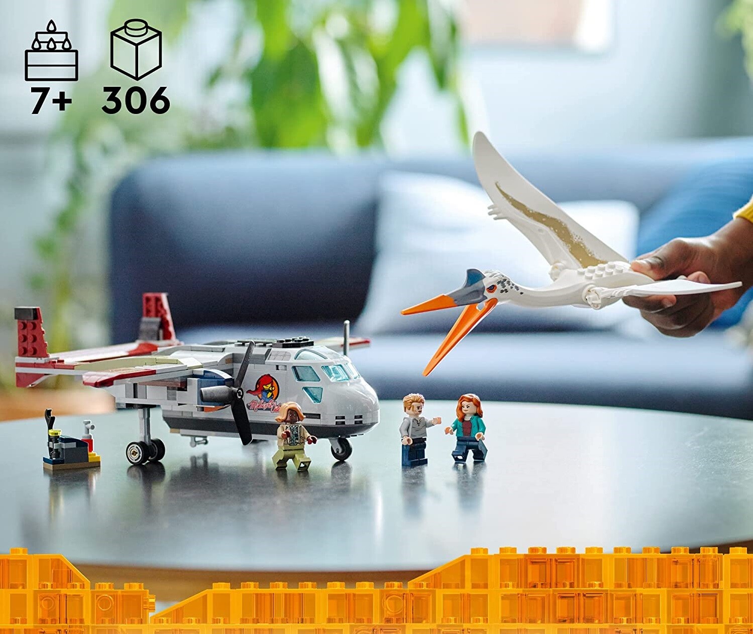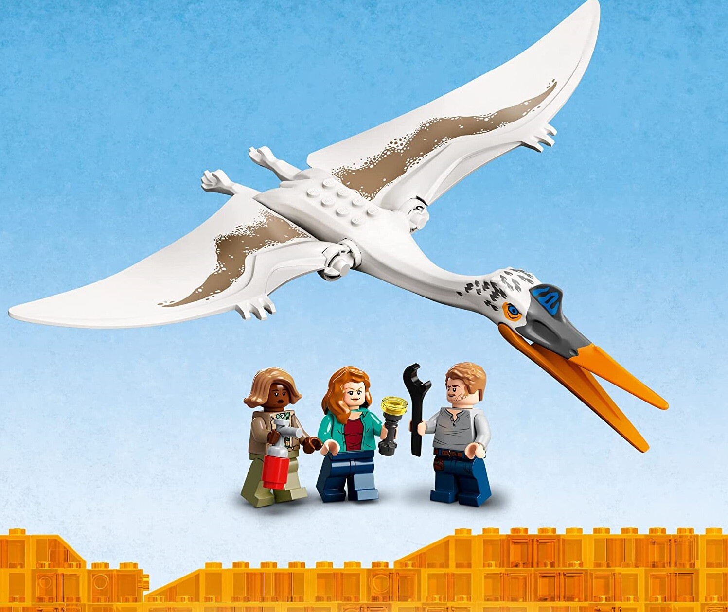 3 минифигурки и фигурка птерозавра — с минифигурками Оуэна Грейди, Клэр Диринг и Кайлы Уоттс. Кетцалькоатль имеет ширину более 29 см, у него подвижные крылья и щелкающий клюв.
