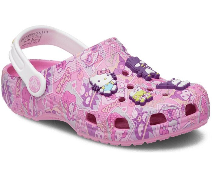 В комплект входят брелоки Hello Kitty, My Melody, Badtz-maru, Kuromi, Chococat, Keroppi и Pompompurin Jibbitz