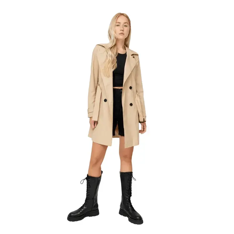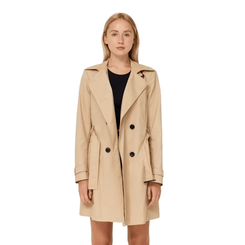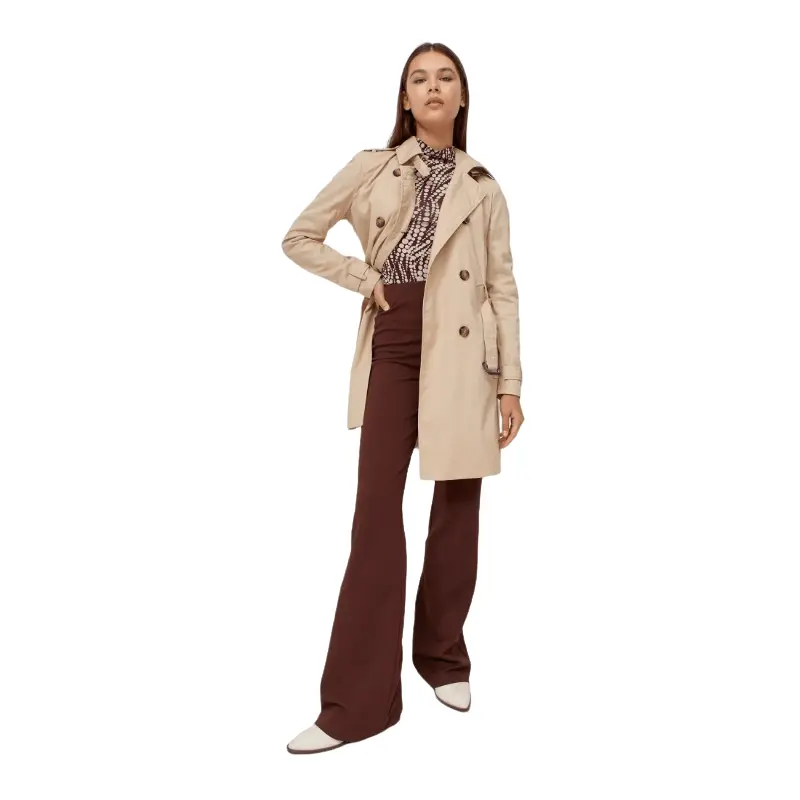 Тренч классического кроя. Застежка на пуговицы. Передние карманы для безопасного хранения ценных вещей.