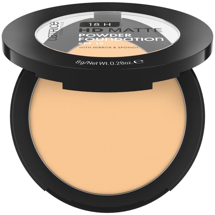 Матовая пудра Catrice 18H Hd. Прощай, блеск кожи: 18H HD Matte Powder Foundation покрывает кожу, как жидкая основа, и одновременно матирует цвет лица, как пудра. Матирующий эффект сохраняется до 18 часов, а пудровая основа устойчива к поту и не размазывается. Уникальная текстура состоит из высокотехнологичных пигментов в виде легкой компактной пудры, тающей во рту. Он ощущается на коже легким, некомедогенным и придает коже визуально гладкую текстуру с эффектом аэрографа. Еще одно преимущество: благодаря SPF15 продукт обеспечивает легкую защиту от ультрафиолета. Идеально подходит для утреннего макияжа или подкрашивания на ходу: встроенное зеркало и спонж позволяют легко наносить пудровую основу. Текстуру можно оптимально наносить и растушевывать спонжем для макияжа. После нанесения лучше всего нанести текстуру и хорошенько проработать: цвет лица уже идеально подготовлен. Чтобы макияж держался особенно хорошо и надолго, можно заранее нанести базу. Произведены без насилия сделаны с любовью. Веган. Без алкоголя, глютена, микропластика, масел, парабенов и парфюмерии.