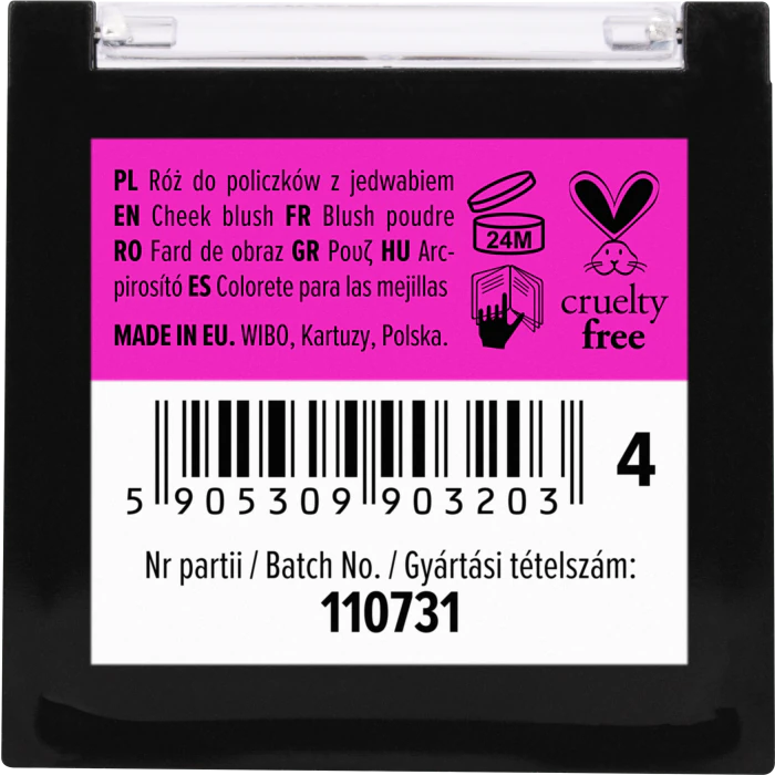 WIBO Cheek to Cheek Blush — идеальный вариант для достижения свежего и естественного вида. Эти компактные порошковые румяна, обогащенные экстрактом шелка, предлагают постепенное нанесение для достижения идеального эффекта на цвет лица. Специальная технология дозирования позволяет контролировать интенсивность румян, обеспечивая красивый и свежий вид. Шелковистая текстура пудры идеально сочетается с другими косметическими продуктами, обеспечивая безупречный результат. Откройте для себя универсальность этого уникального продукта, который доступен в шести различных оттенках, подходящих для всех оттенков кожи. Получите идеальный румянец с помощью WIBO Cheek to Cheek, незаменимого средства в вашем макияже, которое естественным образом подчеркнет вашу красоту.