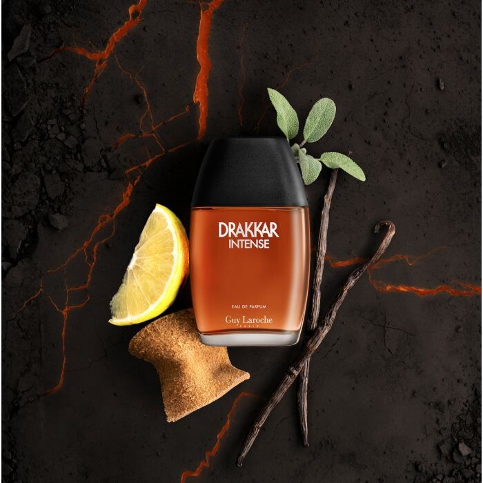 GUY LAROCHE Drakkar Intense EDP. Новая версия Drakkar Intense поражает авантюрным духом и дикой чувственностью. Эта самая сильная эмоция исследует глубины мужчины-Драккара новыми восточными аккордами. Мужчина Drakkar Intense находит источник своей внутренней силы и воссоединяется со своей сущностью через аккорды ароматических масел. Легендарный флакон Drakkar Intense оформлен в янтарных тонах, подчеркивающих интенсивность аромата, напоминающего нам об огне.