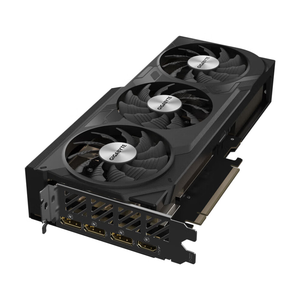 Фирменная видеокарта GeForce RTX 4070 SUPER Windforce OC от бренда Gigabyte. Модель имеет длину 261 мм, черный кожух и три 11-лопастных осевых вентилятора для обдува радиатора с тепловыми трубками. Размер 261 × 126 × 50 мм, частота ускорения может достигать 2505 МГц, оснащена видеопамятью GDDR6X емкостью до 12 ГБ, скорость видеопамяти достигает 21 Гбит/с.