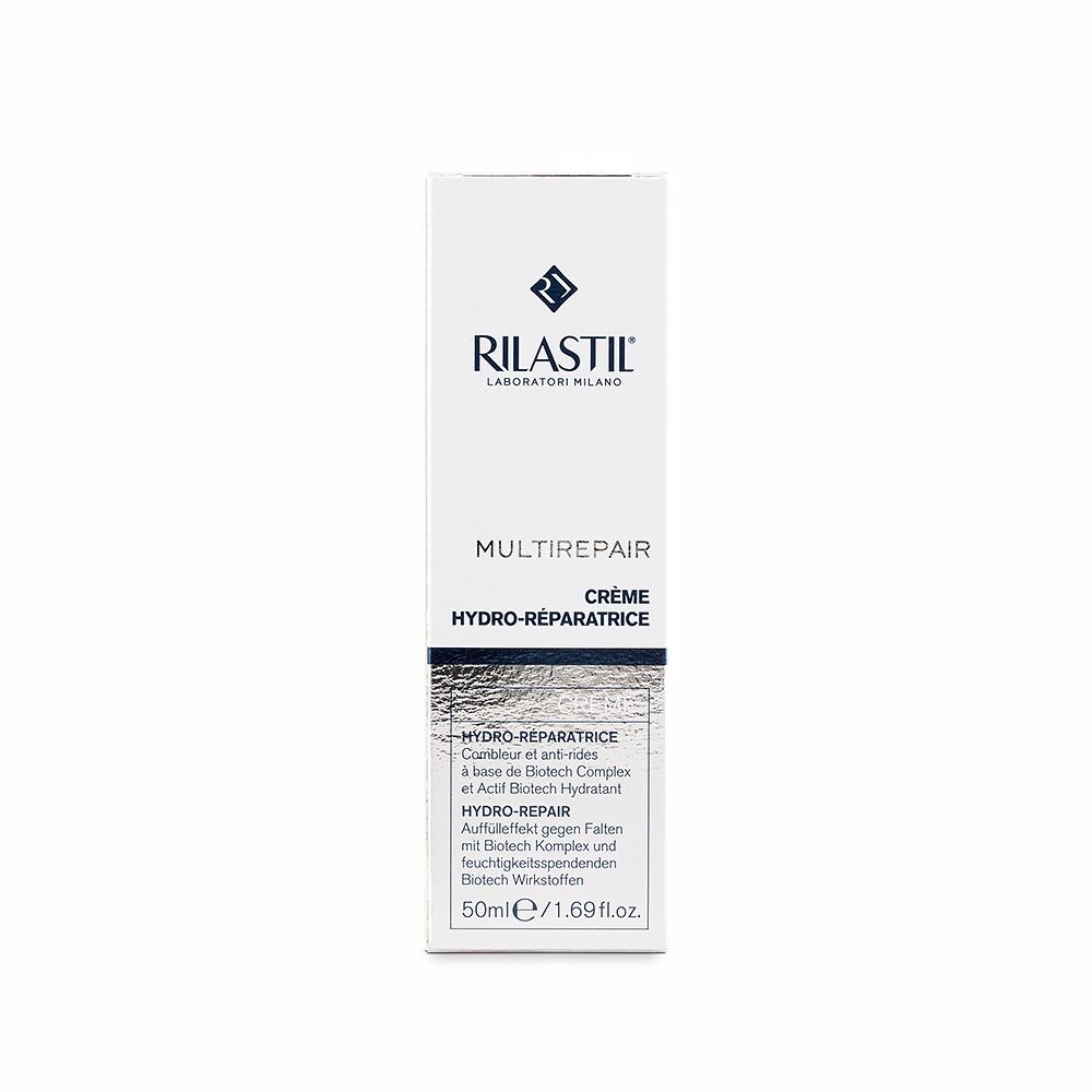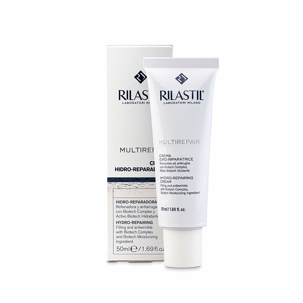 MULTIREPAIR гидровосстанавливающий крем от RILASTIL. Дневной крем для ухода за сухой и очень сухой кожей. Обеспечивает интенсивное увлажнение, устраняет признаки старения, заполняя преждевременные морщины и разглаживая глубокие морщины. Действие Антивозрастное, смягчающее все возрастные пятна на коже лица, придавая ей более гладкий и однородный вид. Этот дневной крем восстанавливает сияние вашей кожи, делая ее обновленной, гладкой и прекрасно увлажненной благодаря большому содержанию гиалуроновой кислоты. Идеально подходит для ухода за сухой и очень сухой кожей, помогает обрести молодую, свежую и расслаблен. Его жидкая, быстро впитывающаяся текстура отлично подходит в качестве основы под макияж.