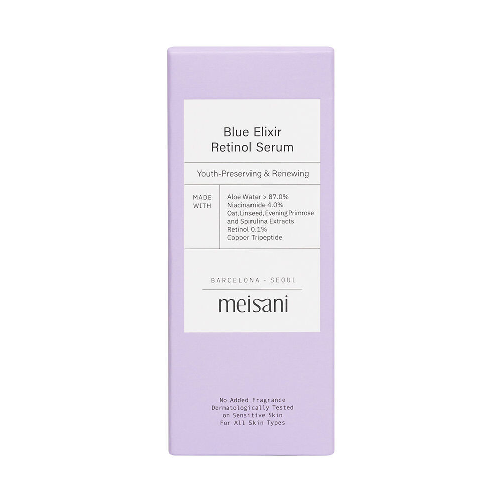 Сыворотка с ретинолом BLUE ELIXIR от MEISANI. Эта сыворотка содержит превосходный антивозрастной ингредиент, который всем нам нужен в нашей коже, - ретинол. Это производное витамина А, которое при контакте с кожей превращается в кислоту ретиноевую, улучшает текстуру кожи и синтез коллагена, повышает гидратацию кожи и действует как антиоксидант. Он также помогает регулировать выработку кожного сала, что делает его полезным для жирной и склонной к акне кожи. Эта формула также содержит алоэ вера, увлажняющее, успокаивающее и восстанавливающее средство, а также ниацинамиды и экстракт спирулины, которые являются антиоксидантами, которые осветляют, увлажняют и помогают. предотвращают появление пятен. Содержит антиоксиданты, такие как трипептид меди, который смягчает появление тонких линий и морщин, учитывая, что с возрастом количество пептидов меди в нашем организме уменьшается. Благодаря процентному содержанию ретинола мы не рекомендуется использовать этот продукт беременным и кормящим женщинам.