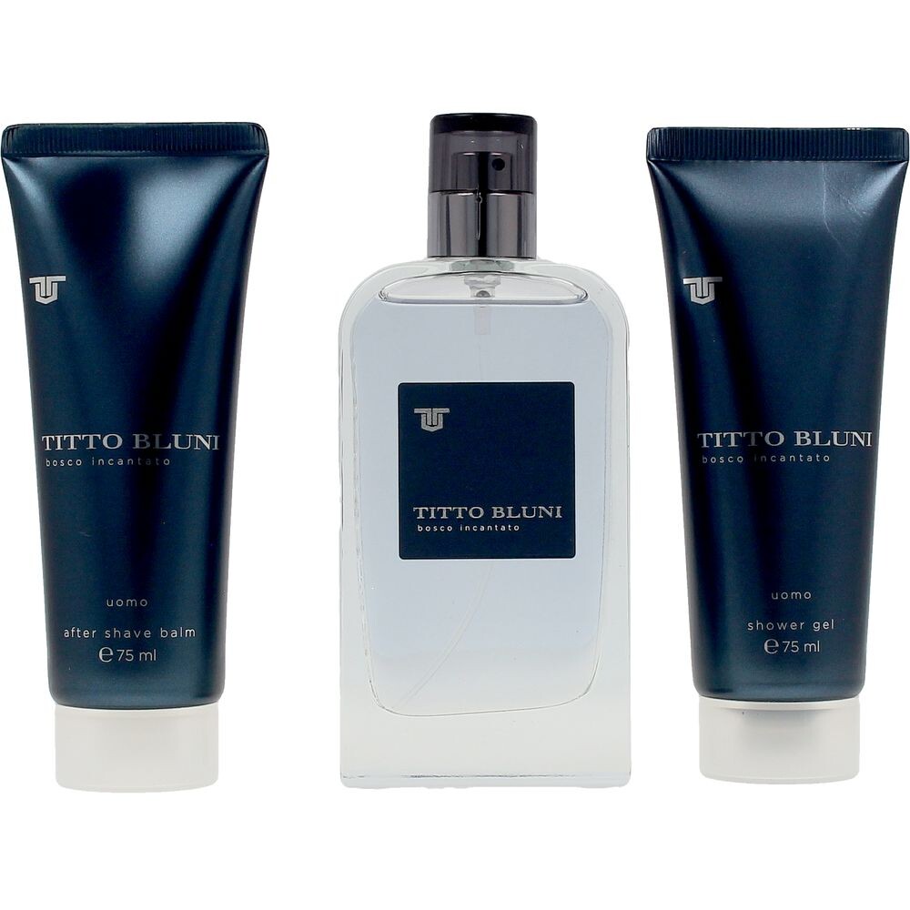 TITTO BLUNI BOSCO INCANTATO LOT of TITTO BLUNI. Подарочная коробка для мужчин от Titto Bluni. Содержит: Спрей EDT 75 мл. Спрей после бритья 75 мл. Гель для душа 75 мл