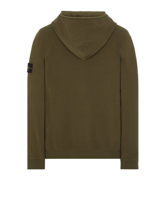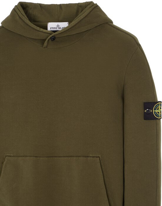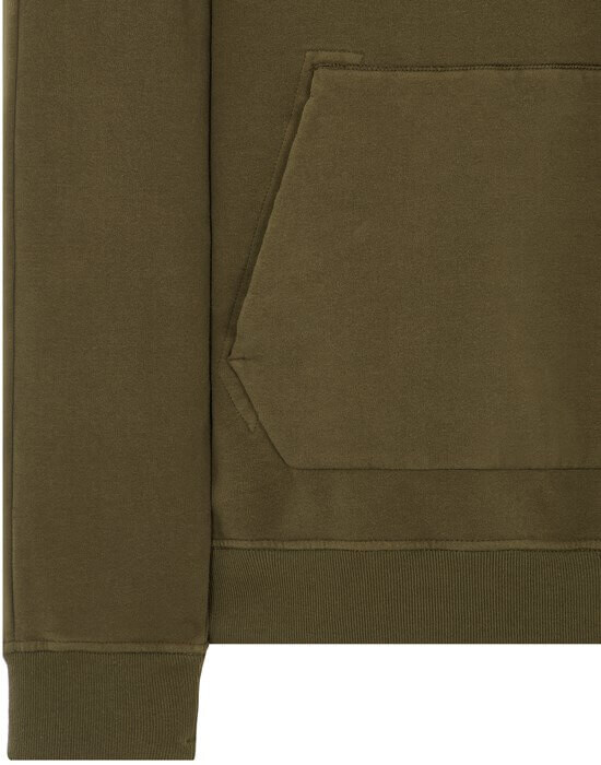 Обычная посадка. Капюшон на подкладке из хлопкового трикотажа, небольшая отделка по контуру из хлопка мако и две застежки-кнопки. Рукава реглан сзади. Накладной карман с косыми входами. Значок Stone Island на левом рукаве. На спине, под вырезом, люнет с внутренней подкладкой. Манжеты в рубчик и нижняя резинка.