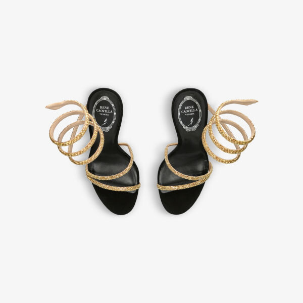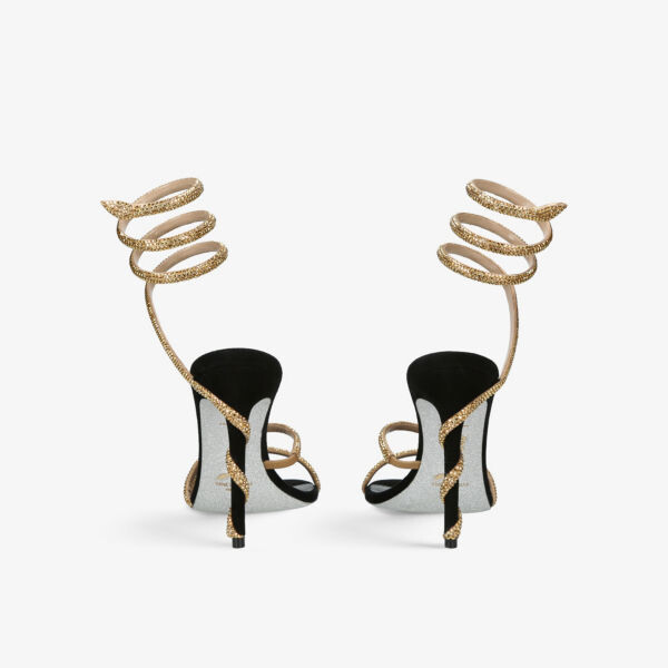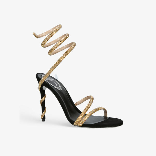 Кожаные босоножки на каблуке René Caovilla. 100% кожа. Открытый носок, украшение из страз по всей поверхности, круглый носок, спиральный акцент на щиколотке, каблук-шпилька. Протрите чистой сухой тканью. Верх: 100% кожа. Подкладка: 100% кожа. Подошва: 100% кожа.