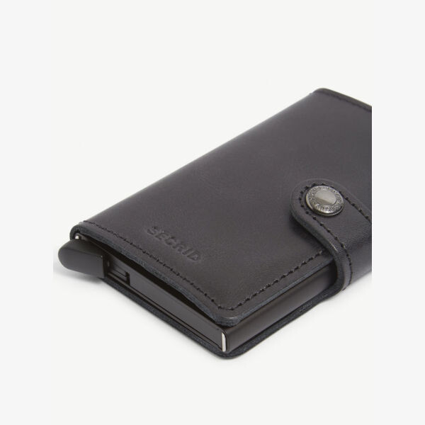 Кожаный кошелек Secrid. 100% кожа. 100% алюминий. Застежка на пуговицы. Два слота для карт, отделение для защиты RFID, тисненый брендинг, однотонный цвет. Высота 9,5см, ширина 6,2см, глубина 1,6см. Специализированная чистка кожи. Сделано в Италии.