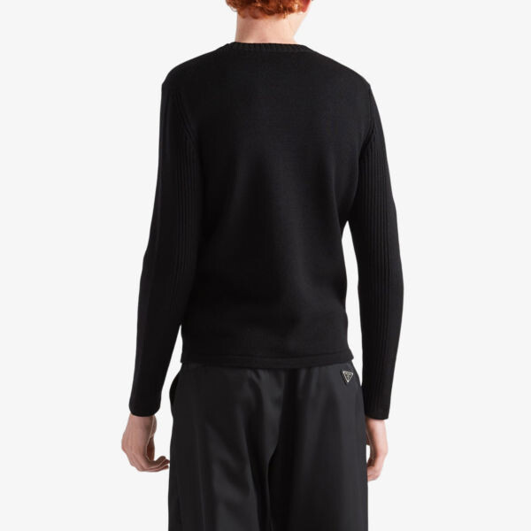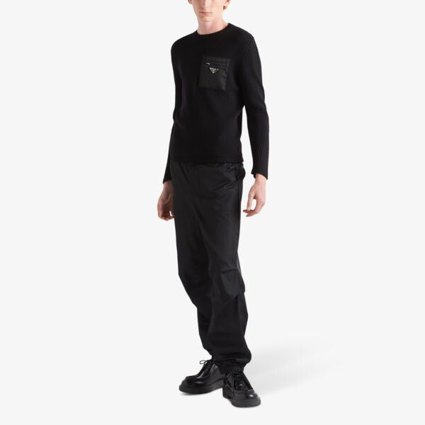 Джемпер из шерсти с накладными карманами с фирменной бляшкой Prada, черный
