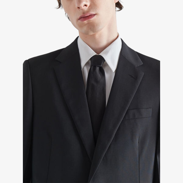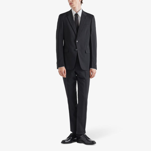 Однобортный шерстяной костюм приталенного кроя Prada, черный