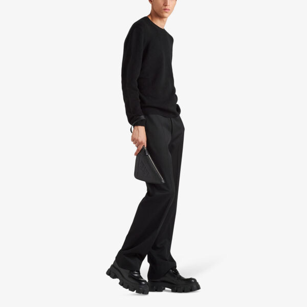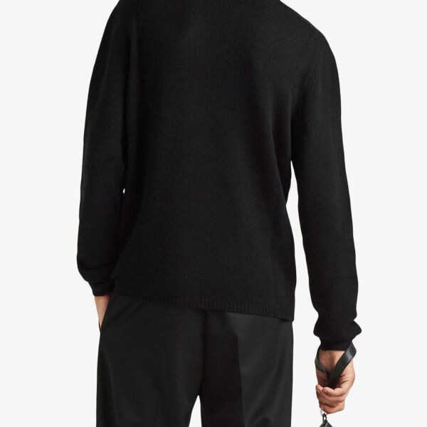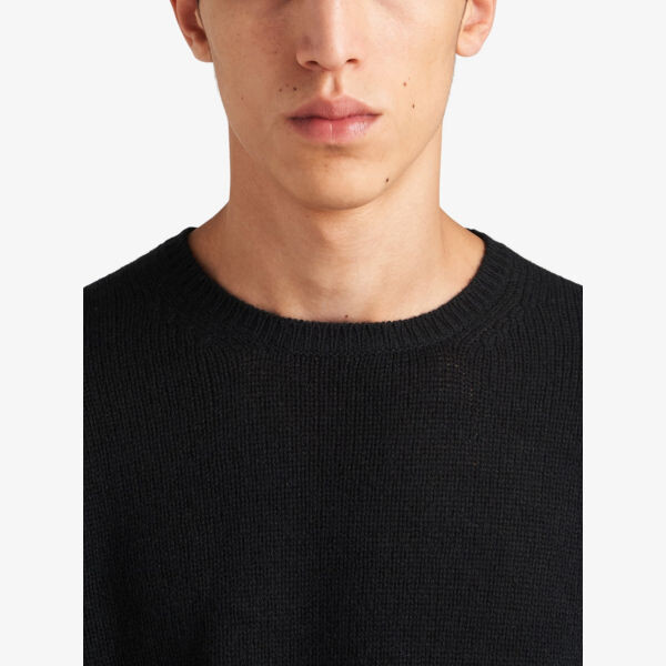 Кашемировый джемпер классического кроя с круглым вырезом Prada, черный