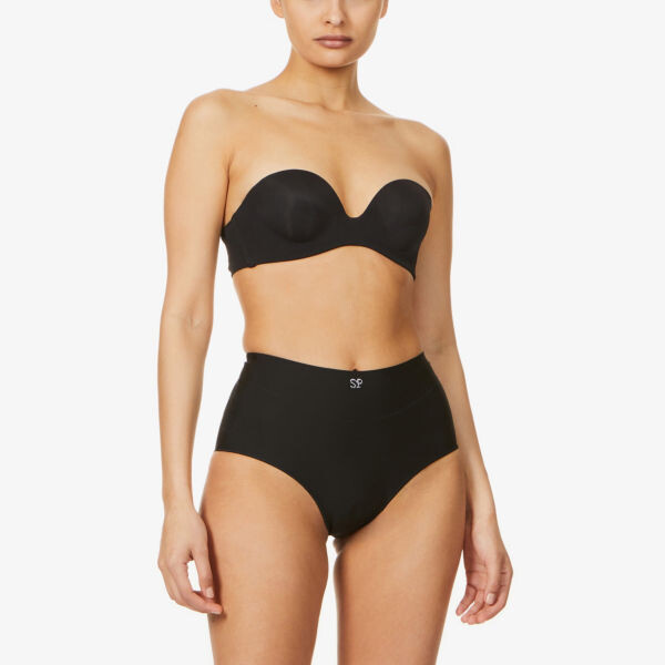Бюстгальтер Simone Pérèle из эластичной ткани. 46 % полиуретан, 25 % полиамид, 21 % полиэстер, 8 % эластан. Потайная застежка на крючки сзади. V-образный вырез, без бретелек, мягкие формованные чашки с набивкой, чашки на косточках, боковые косточки, отстрочка в тон. Ручная стирка.