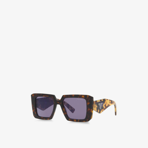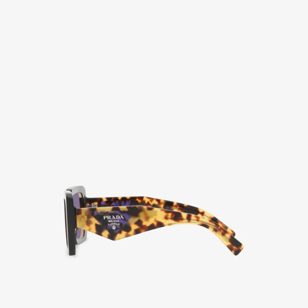 Солнцезащитные очки Prada из ацетата и полиамида. Каркас: ацетат. Линза: полиамид. Номер модели: PR 23YS. Квадратные рамки. Массивный дизайн, затемненные линзы, контрастные дужки черепахового цвета, логотип на дужках. Протрите чистой сухой тканью. Защита от ультрафиолета 100% защита от UVA/UVB.