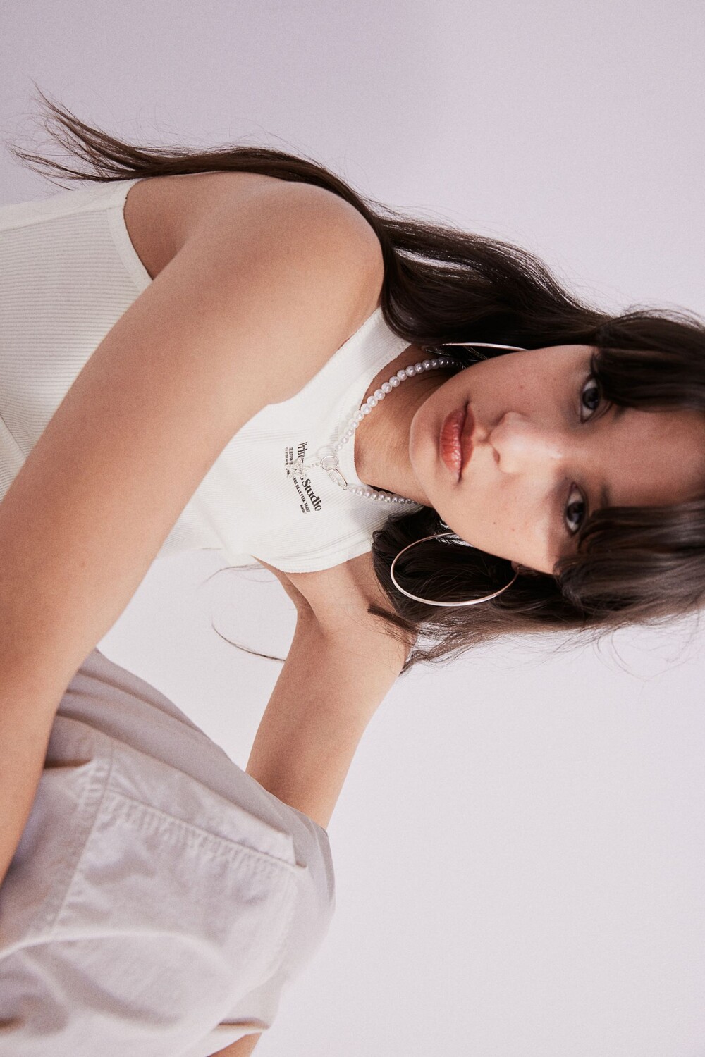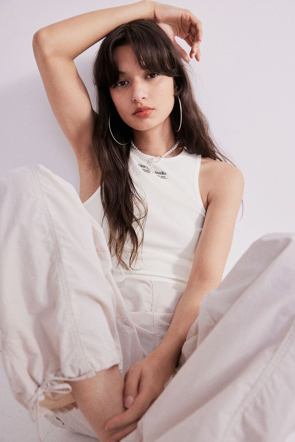 Топ из хлопкового трикотажа в рубчик. Узкий крой сверху, прямой низ.