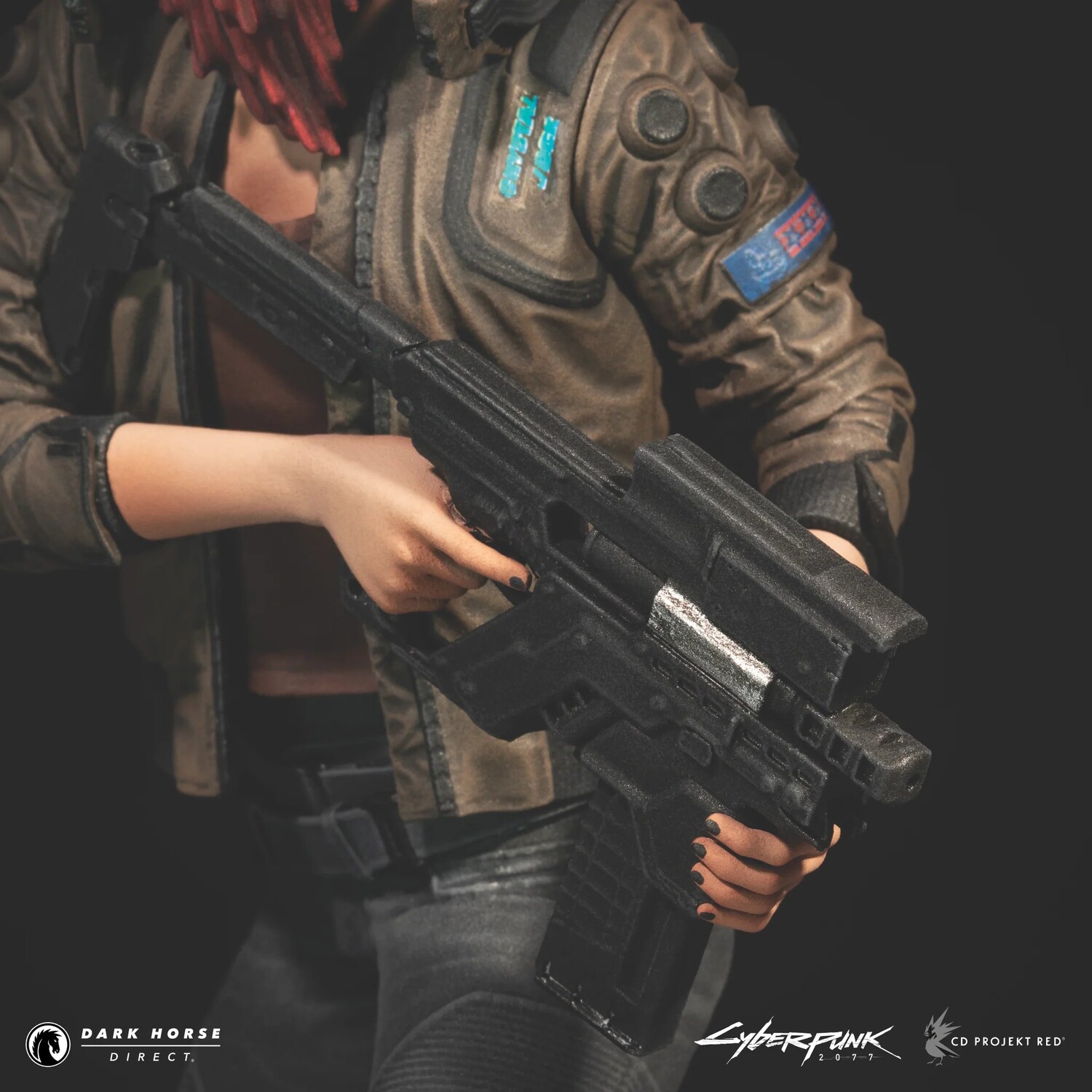 Dark Horse и CD Projekt RED вновь объединили усилия для создания новых фигурок для Cyberpunk 2077. Эта фигурка демонстрирует один из возможных обликов V, полностью настраиваемого протагониста Cyberpunk 2077, управляемого игроком. В этой высокодетализированной версии представлена модель женской версии V, с которой игрок может начать игру. Одетая в сапоги на каблуках и куртку с эмблемой Samurai, Ви готова к бою, орудуя умной винтовкой. Высота V на подставке с эмблемой Samurai составляет примерно 8,5 дюйма.