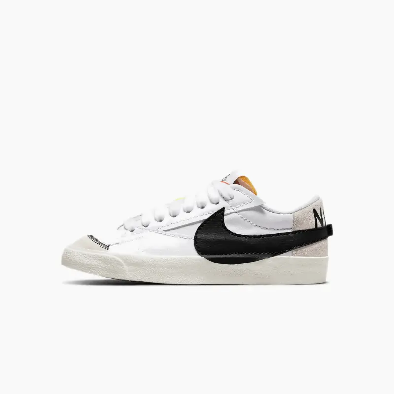 Модель Nike Blazer Low '77 Jumbo сочетает в себе стиль старой классики. Прошитые кожаные накладки и замшевая отделка на носке и более толстая строчка отсылают к классической модели Blazer, придавая всей модели характерный баскетбольный стиль. Широкие шнурки Jumbo намного проще завязывать. Резиновая подошва с рельефным рисунком «елочка» создает классический образ и обеспечивает сцепление.