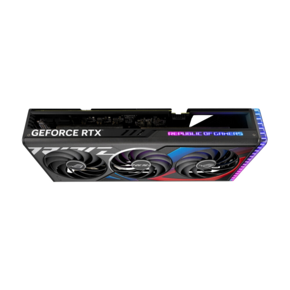 Видеокарта ASUS GeForce RTX 4070 Ti SUPER ROG Strix OC Edition предназначена для установки в геймерские ПК. Благодаря архитектуре NVIDIA Ada Lovelace и скоростной памяти стандарта GDDR6X объемом 16 ГБ графический адаптер обеспечивает высокую производительность. Тактовая частота процессора составляет 2670 МГц и предусматривает разгон до 2700 МГц. ASUS GeForce RTX 4070 Ti SUPER ROG Strix OC Edition выделяется надежной элементной базой и программируемой подсветкой RGB. Вывод изображения выполняется посредством 3 разъемов DisplayPort и 2 разъема HDMI. Активное охлаждение с тремя осевыми вентиляторами, радиатором и тепловыми трубками быстро рассеивает тепло от внутренних компонентов. Технология альтернативного вращения формирует интенсивный поток воздуха при сниженном уровне шума.