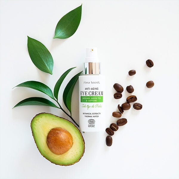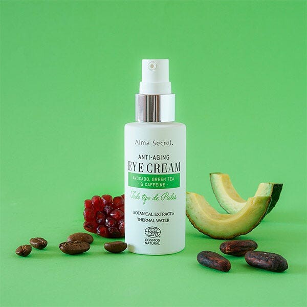 Чистые органические масла авокадо, граната, вечерней примулы и риса вместе с маслами ши и какао глубоко увлажняют и укрепляют нежную кожу вокруг этой области, а растительные экстракты, содержащиеся в термальной воде зеленого чая, руско, василька и ромашки, они снимают отеки, успокаивают и улучшают тонус темных кругов.