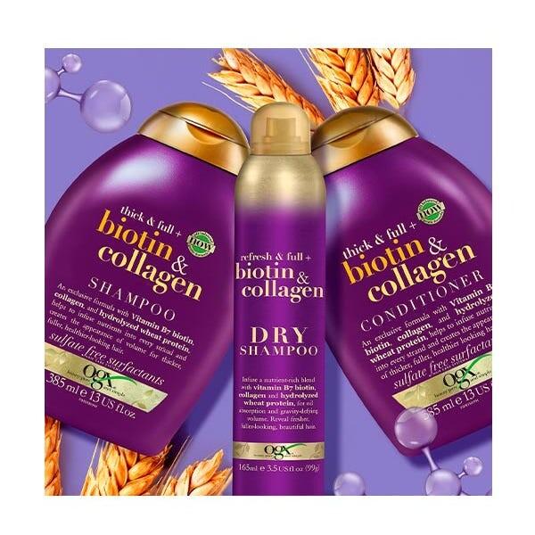 OGX — это шампунь, состоящий из оптимальной формулы биотина и коллагена, который помогает придать объем, текстуру и >гуще для любого типа волос, особенно для тонких и тонких.