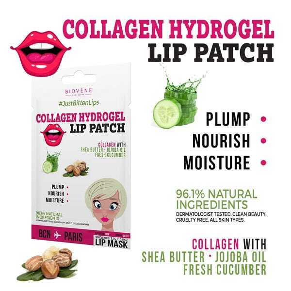 Гидрогелевая маска для губ с питательным коллагеном, которая помогает успокоить и восстановить губы, придавая им мягкость и гладкость.