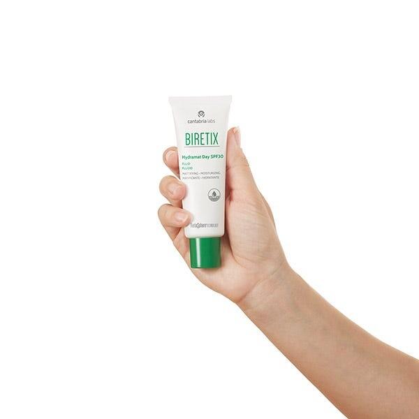 BIRETIX Hydramat Day SPF 30 — это легкий безмасляный флюид с быстрым впитыванием, уникальный на рынке благодаря сочетанию активных ингредиентов и технологии Retinsphere®. особенно рекомендуется для ежедневного ухода за жирной кожей и/или кожей, склонной к акне.