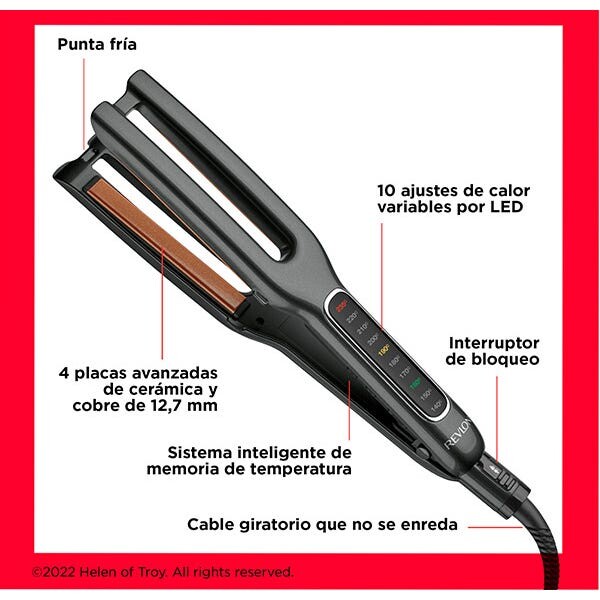 -Усовершенствованная медно-керамическая технология обеспечивает превосходную равномерную теплопередачу и более быструю укладку, что приводит к сверхгладкому скольжению и в 2 раза более быстрому выпрямлению волос. один проход.