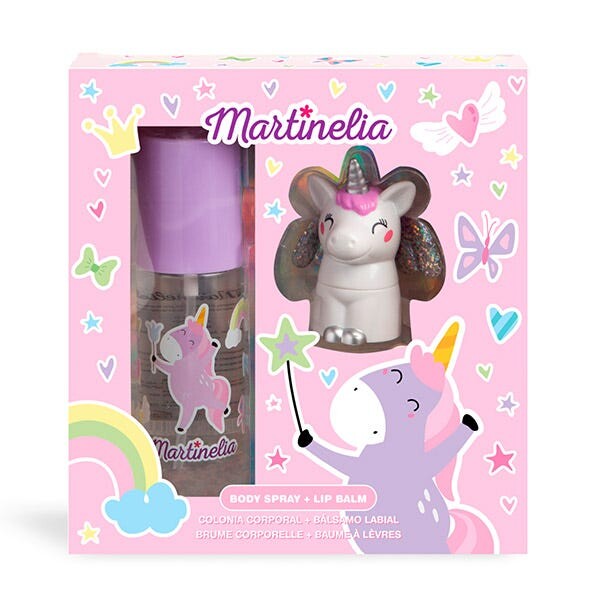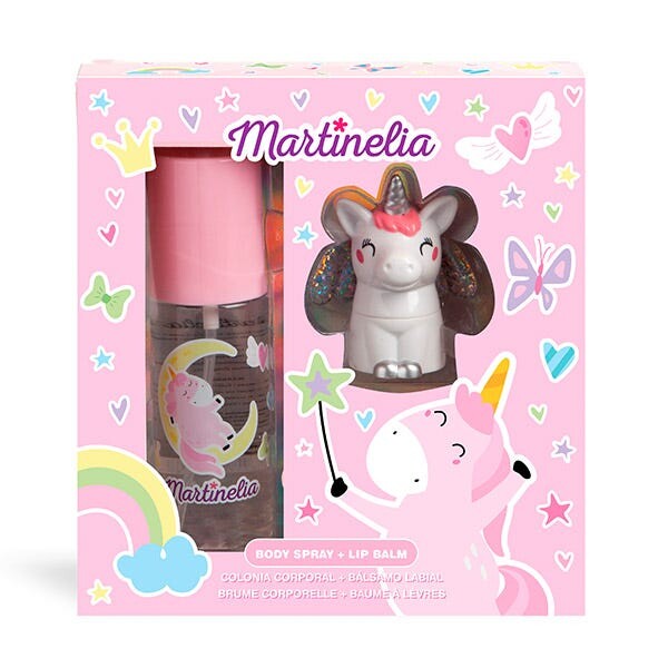Вы поклонник единорогов? У нас есть для вас идеальная упаковка: в нее входит спрей для тела и бальзам для губ в форме единорога. Наполните себя волшебством его сладкого аромата и увлажните губы. Доступно в трёх цветах: розовом, сиреневом и бирюзовом.