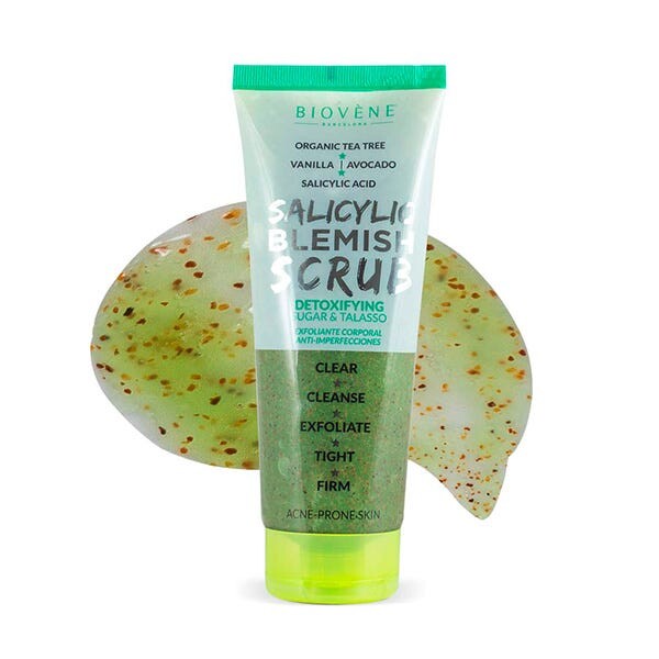 Детоксицирующий скраб для тела для борьбы с пятнами с осветляющей салициловой кислотой и органическим чайным деревом.
