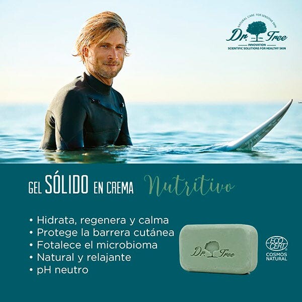 Питательный твердый гель для душа для чувствительной кожи на основе концентрата мягких и кремообразных натуральных поверхностно-активных веществ, которые образуют плотную и роскошную пену, нежно очищая кожу и укрепляя ее микробиом олигосахаридом альфа-глюгана. Strong>восстанавливает естественный баланс и является биостимулятором естественной защиты.