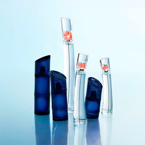 Новый насыщенно-синий флакон от Kenzo Homme – это ода поэзии. Его форма отражает силу и гибкость бамбука. Его скошенная кепка напоминает форму катаны, меча самураев.