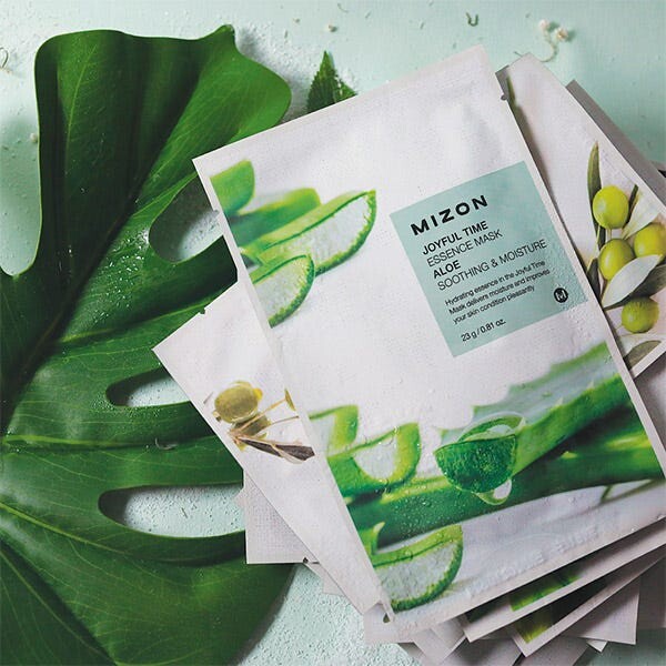 Тканевая маска с экстрактом листьев алоэ вера — ингредиентом, обладающим увлажняющими и успокаивающими свойствами.
