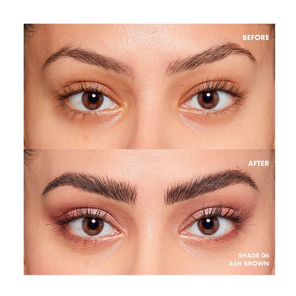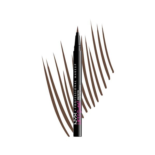 Этот карандаш с гибким кончиком и микрощеткой позволяет создавать штрихи желаемой толщины, очень похожие на волоски бровей.