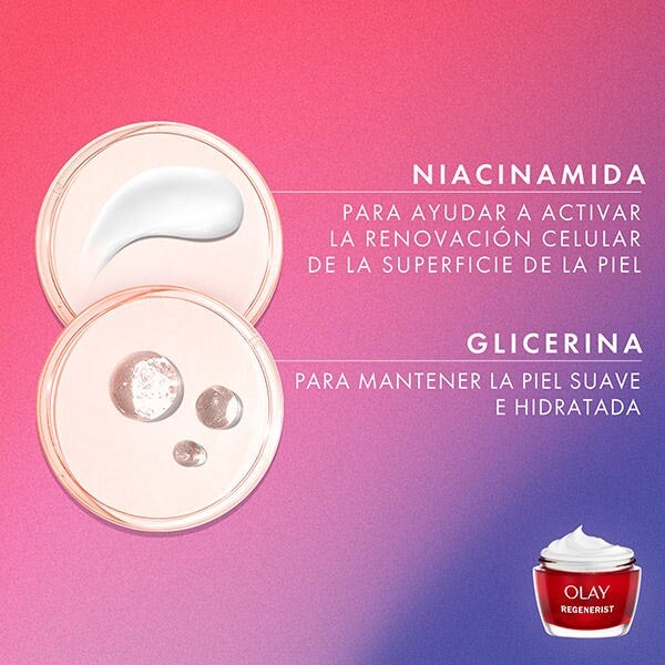 ДНЕВНОЙ КРЕМ. Обновите естественное сияние вашей кожи с помощью дневного крема Olay Regenerist, самого увлажняющего продукта Olay. Его увлажняющая формула, обогащенная витамином B3 (ниацинамидом) и пептидами Olay, глубоко проникает в поверхность кожи и помогает оптимизировать обновление клеток. Глубоко увлажняет в течение 24 часов, заметно обновляет и укрепляет кожу. Наш увлажняющий и антивозрастной крем подходит для всех типов кожи, включая нормальную, сухую и жирную. Используйте дневной крем Olay Regenerist в течение 28 дней. Заметно обновляет внешний вид кожи.