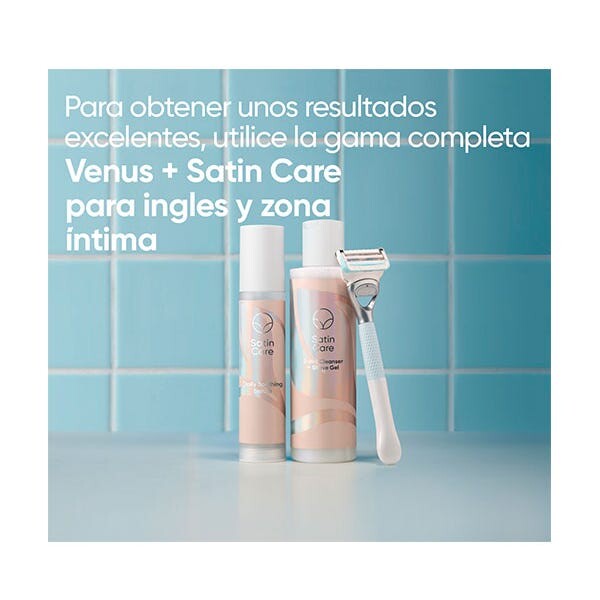 Гель 2-в-1 (очищающий гель + гель для депиляции) от Venus Satin Care используется при эпиляции для создания скользящего защитного слоя и > > избегайте раздражения после эпиляции или ежедневно в качестве мягкого очищающего средства.