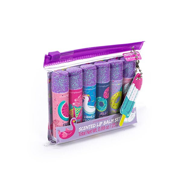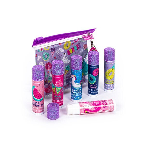 Набор ароматизированных бальзамов для губ, идеально подходящих для глубокого увлажнения губ. Удобная упаковка, которую можно брать с собой куда угодно.