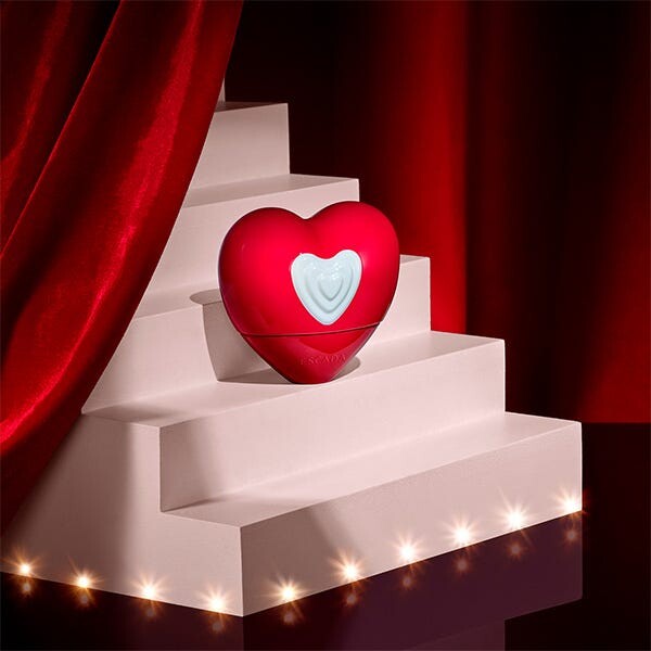 Его блестящий флакон в форме сердца доступен в объемах 30 мл, 50 мл и 100 мл. одет в красный бархат, напоминающий театральный занавес. Этот женский парфюм Escada представлен в эффектной коробке с принтом «любовь» по всей поверхности, имитирующим стиль классического бродвейского плаката.
