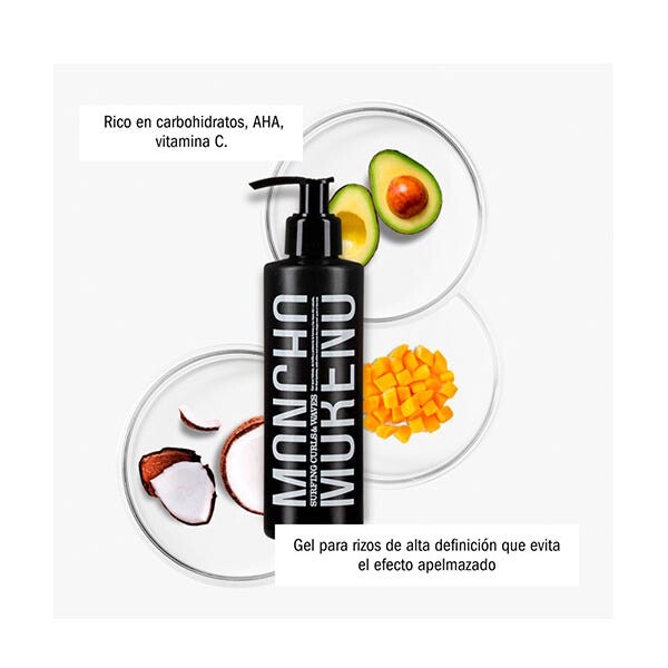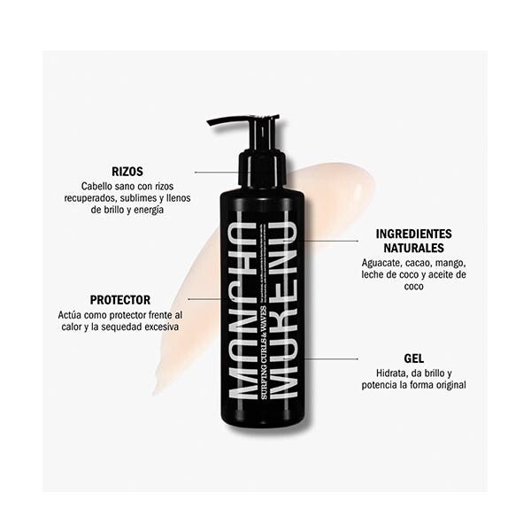 Его формула, состоящая на 92,8% из натуральных ингредиентов: панела (цельный тростниковый сахар), кокосовое масло и масло авокадо, сок манго и кокосовое молоко, а также богатая витаминами А, Е и D, делает его идеальным гелем. Уход за сухими и ломкими волосами. сохраняя свою форму.