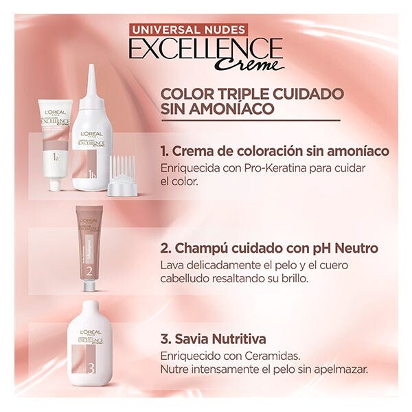 Excellence Universal Nudes включает обширную палитру из 10 универсальных оттенков, которые подходят любому тону кожи*. Его формула Triple Care защищает волосы до, во время и после окрашивания.