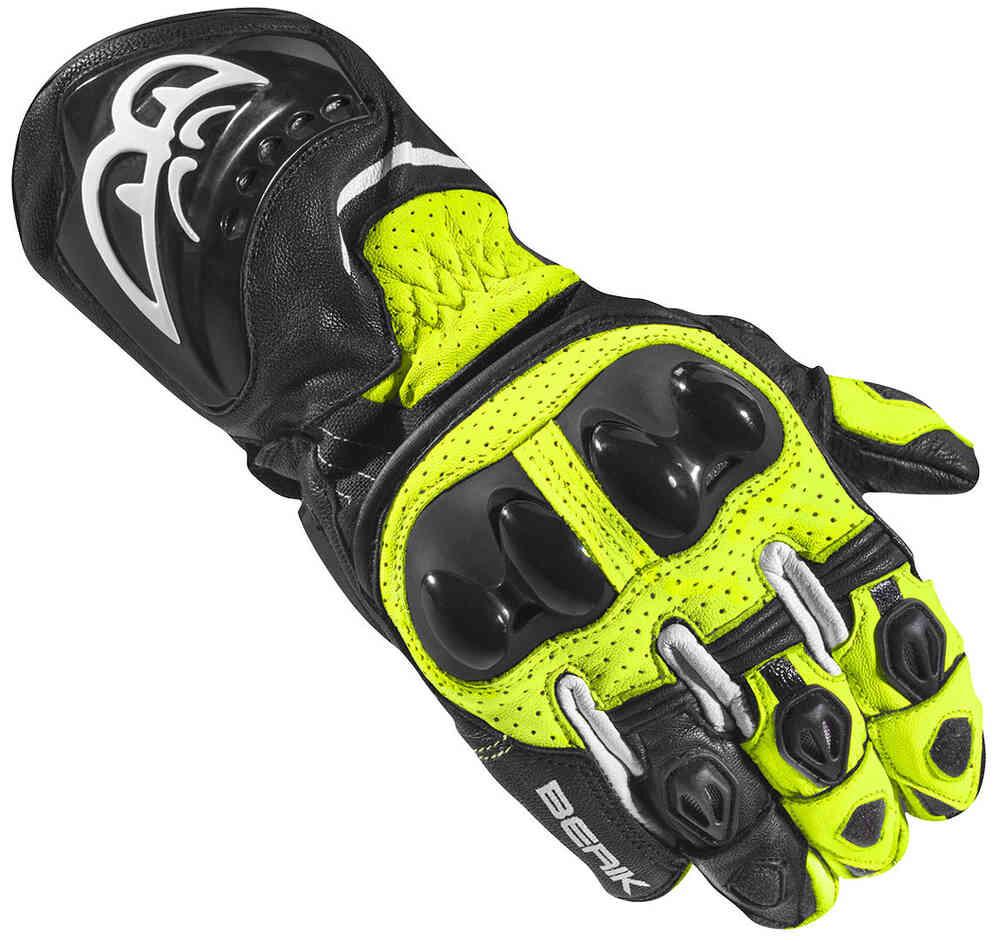 Мотоциклетные перчатки Berik Spa Evo Перчатки Berik Spa Evo обеспечивают высокий уровень защиты и комфорта при ношении, имеют стильный спортивный дизайн! Особенности: Козья кожа премиум-класса толщиной 0,6–0,8 мм Жесткая пастичная защита суставов пальцев дополнительная защита на пальцах и запястье перфорированные панели обеспечивают оптимальный поток воздуха Clarino на ладони для защиты от истирания и дополнительного сцепления с рулем длинные манжеты с застежкой-липучкой Предварительно изогнутые пальцы для повышенного комфорта защитные перчатки для мотоциклистов (EN 13594:2015) )