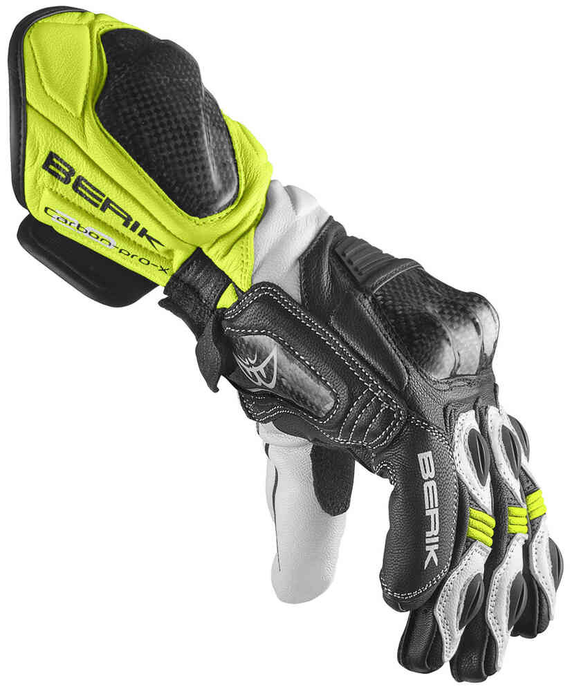 Мотоциклетные перчатки Berik TX-1 Pro Перчатки TX-1 Pro имеют спортивный дизайн и оснащены карбоновой защитой большой площади для максимальной безопасности. Особенности: высококачественная кожа предварительно изогнутые пальцы для повышенного комфорта Углеродные накладки на суставы пальцев Углерод пластины на подушечке руки и на манжете. Жесткая пластиковая защита пальцев. Гибкая кожа на пальцах для большей свободы движений. Двойной слой материала и усиленная боковая стенка. Длинная манжета на липучке. Регулировка запястья на липучке.