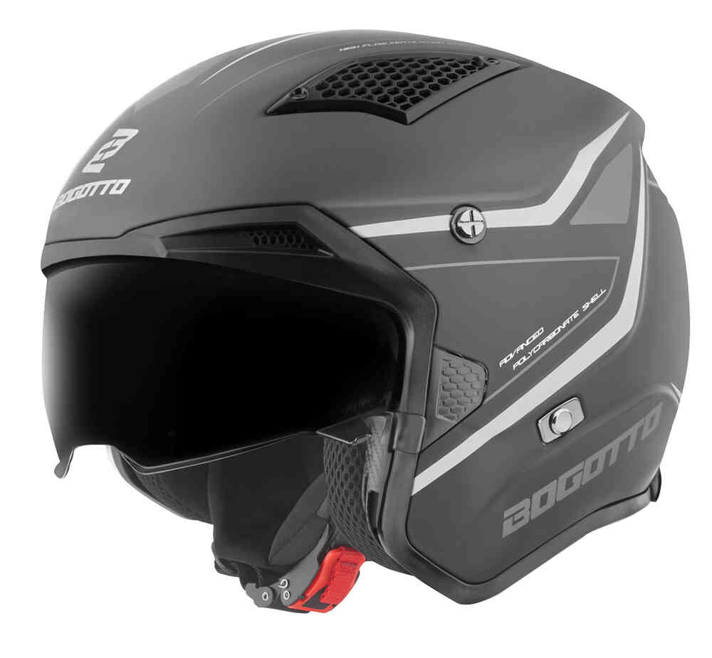 Шлем Bogotto Radic WN-ST 22.06 Шлем Bogotto Radic впечатляет практичностью и высоким качеством оснащения. Солнцезащитный козырек дает вам свободу всегда быть в идеальном снаряжении в любое время суток. Ощущение комфорта обеспечивается удобной подкладкой шлема, а достаточное количество вентиляционных отверстий гарантирует прохладу головы. С этим шлемом вы будете гибкими и защищенными во время поездок. Особенности: 2 размера корпуса с прозрачным козырьком устойчивость к ультрафиолетовому излучению съемная подбородочная часть съемный козырек вентиляционные отверстия спереди и сверху вентиляционные отверстия сзади съемные и моющаяся подкладка Логотип Bogotto сзади и спереди Надпись Bogotto по бокам высококачественная подкладка шлема Отверстия для динамиков для системы связи Технические характеристики: Микрометическая застежка-трещотка Оболочка HIRP (высокопрочный полимер) Одобрение J ECE 22.06 Вес: 1200 г +/- 50 г (размер L, вес без подбородка) Содержимое: 1 шлем Bogotto Radic WN-ST 1 пара вентиляционных крышек 3 чехла для крепления козырька шлема 1 крепление для камеры 1 сумка для шлема
