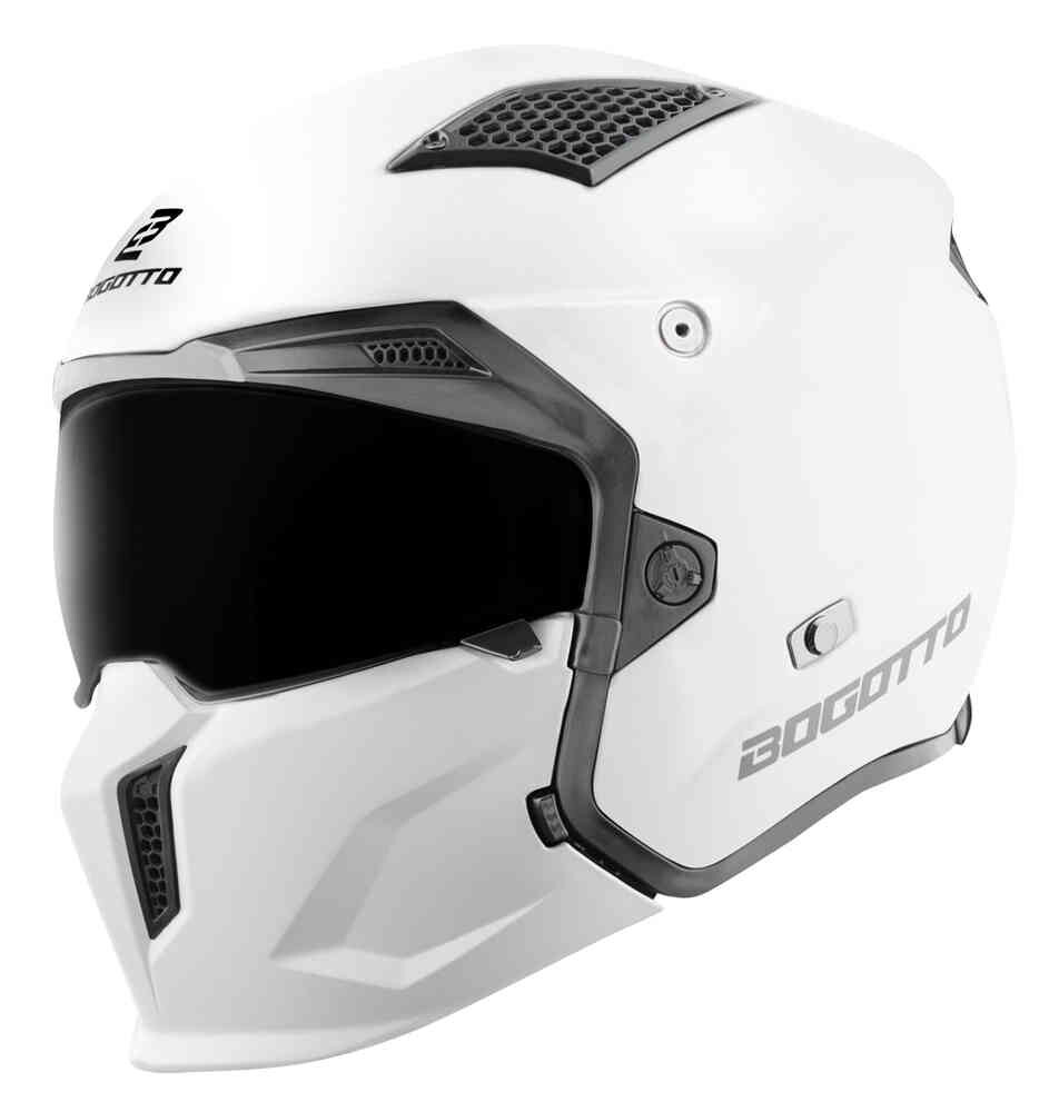 Шлем Bogotto Radic Bogotto Radic впечатляет практичностью и высоким качеством оснащения. Солнцезащитный козырек дает вам свободу всегда быть в идеальном снаряжении в любое время суток. Ощущение комфорта обеспечивается удобной подкладкой шлема, а достаточное количество вентиляционных отверстий гарантирует прохладу головы. С этим шлемом вы будете гибкими и защищенными во время поездок. Особенности: 2 размера корпуса с солнцезащитным козырьком устойчивость к ультрафиолетовому излучению регулировочный винт на высоте механизма козырька для точной настройки уплотнения козырька съемная секция подбородка съемный козырек вентиляционные отверстия спереди и сверху вентиляционные отверстия сзади съёмная и моющаяся подкладка логотип Bogotto сзади и спереди надпись Bogotto по бокам высококачественная подкладка шлема отверстия для динамиков системы связи Технические характеристики: Micrometic Застежка-трещотка Оболочка из ударопрочного полимера HIRP Одобрение J ECE 22.05 Вес: 1200 г +/- 50 г (размер L, вес без перекладины для подбородка) Содержимое: 1 шлем Bogotto Radic 1 сумка для шлема