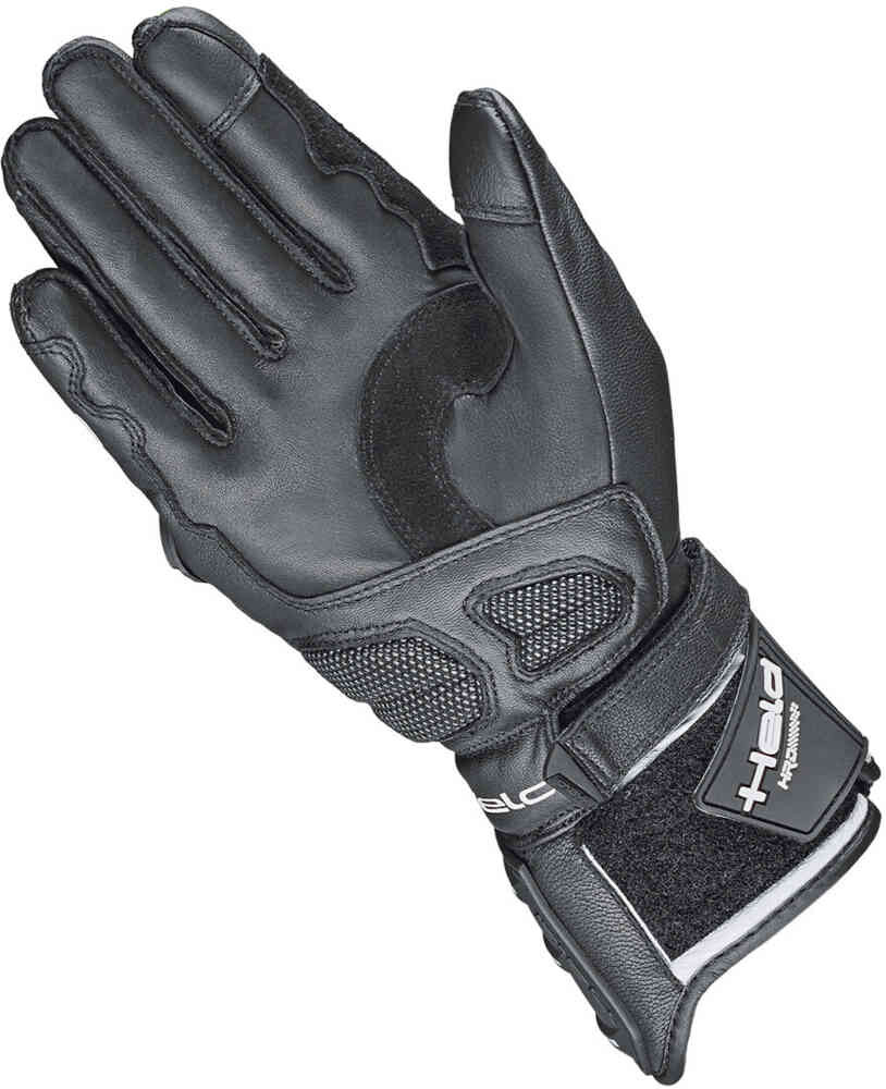 Мотоциклетные перчатки Held Akira RR Akira RR – это современные спортивные перчатки. Особенности: Верхняя часть руки изготовлена из козьей кожи Нижняя часть руки изготовлена из кожи кенгуру, устойчивой к истиранию Стойкая окраска и устойчивость к поту Нижняя часть без подкладки Специальный шов с открытыми краями кожа эластичные вставки на тыльной стороне и пальцах тоннельный ремешок на запястье Застежка-липучка на запястье и манжетах Перфорированная верхняя часть руки Специальная кожа на указательном пальце для работы со смартфонами Технические характеристики: EN 13594:2015 Защитные перчатки для мотоциклистов Подушечка руки с подкладкой Held Armaprotec Защита костяшек протестирована (испытание на удар для защиты костяшек пальцев) Титановый корпус сустава Сферическая часть кисти/укрепление края кисти материалом марки SuperFabric® Верхняя часть руки полностью покрыта материалом Held Armaprotec Защита ладони материалом марки SuperFabric® Жесткий пластиковый корпус для защиты мизинца от скручивания. Боковой корпус из твердого пластика.